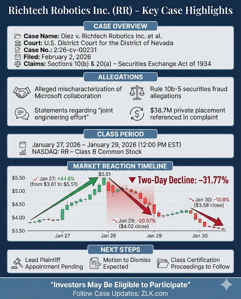A securities fraud class action has been filed against Richtech Robotics Inc. (NASDAQ: RR) in the U.S. District Court for the District of Nevada, alleging violations of the Securities Exchange Act of 1934, including Rule 10b-5.