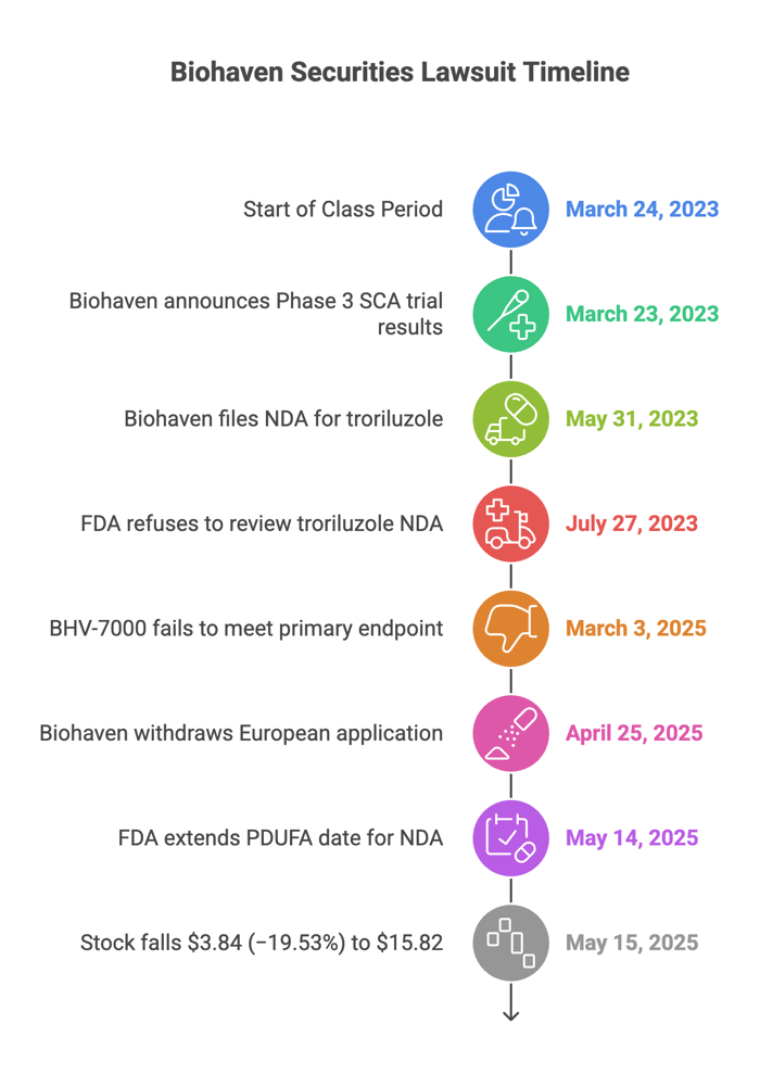 From July 2023 to May 2025, the Company made a series of statements touting both drugs’ efficacy and chances for FDA approval. But after lackluster trial results, the FDA balked. Biohaven’s stock price plunged.