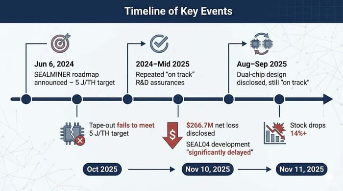 The core allegation is that between June 6, 2024, and November 10, 2025 (the "Class Period"), executives repeatedly assured investors that the research and development (R&D) for the highly anticipated SEAL04 ASIC chip, targeting an industry-leading 5 J/TH efficiency, was "on track." This projected technological breakthrough was positioned as the Company's competitive moat, poised to unlock substantial value for shareholders.