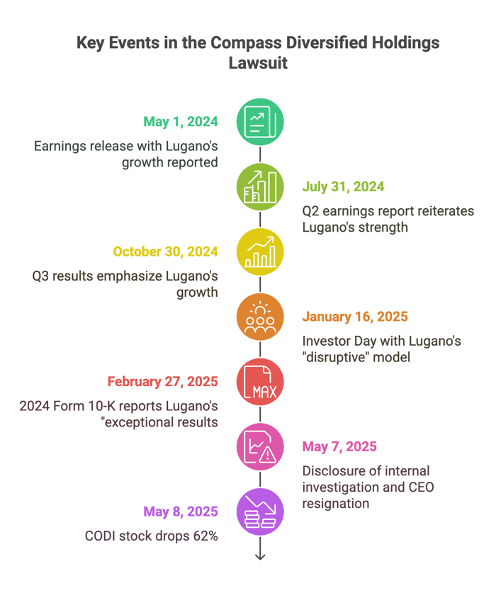 According to the complaint, Compass failed to disclose material risks, including internal control deficiencies and undisclosed financial arrangements at Lugano. When these issues were revealed, CODI stock dropped over 62% in a single day.