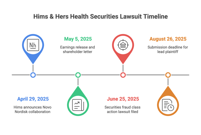 Plaintiffs say Hims and its executives violated securities law under the Securities Exchange Act. On April 29, 2025, Hims issued a press release announcing a “long-term collaboration” with Novo Nordisk. Hims was going to distribute “FDA-approved Wegovy®” with clinical support through its telehealth platform, in collaboration with Novo.