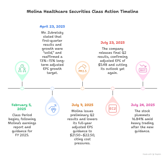 - February 5, 2025: Class Period begins, following Molina’s earnings report and guidance for FY 2025.