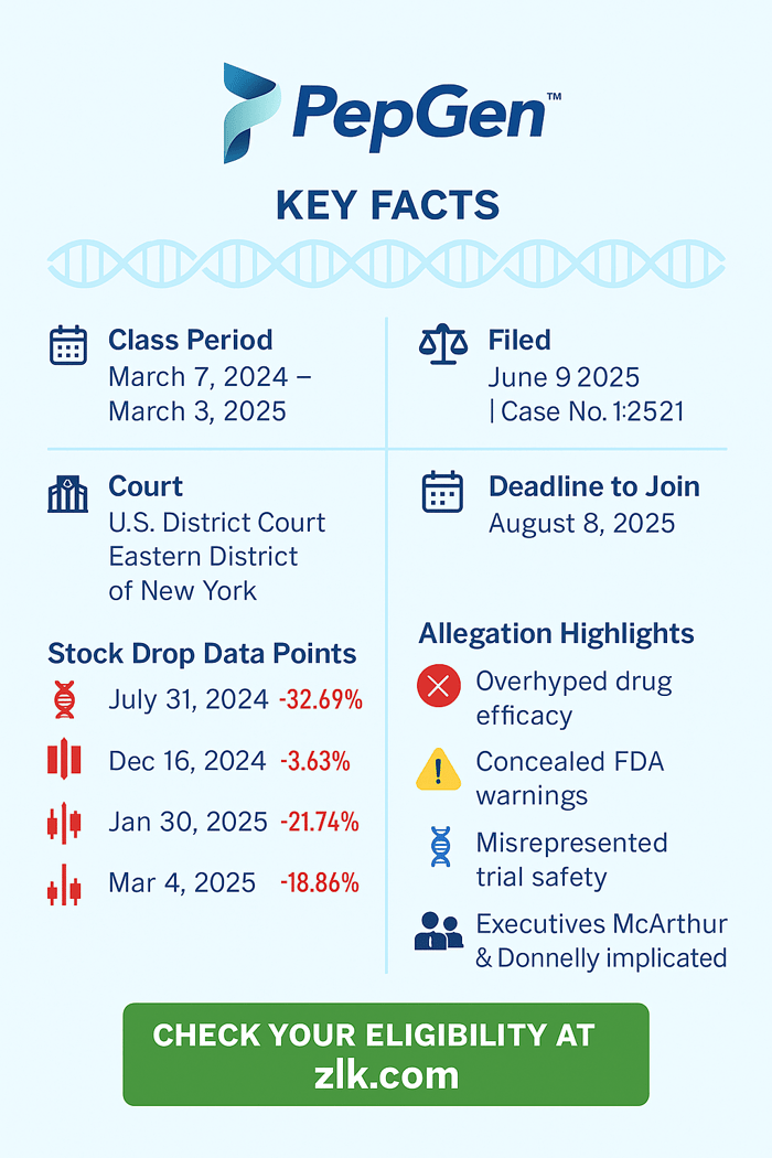 To learn if you are eligible for recovery under the PepGen securities fraud lawsuit, visit the case submission page here.