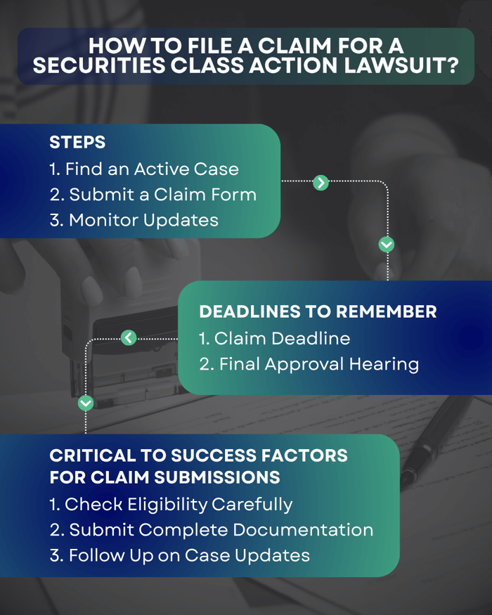 - Claim Deadline: Investors must submit their claims before the final deadline specified in the class action notice.