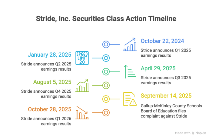 - September 14, 2025: The first tremor hit when a report stated that the Gallup-McKinley County Schools Board of Education had filed a complaint against Stride. This complaint alleged fraud, deceptive trade practices, systemic legal violations, and intentional misconduct, including inflating enrollment numbers by retaining "ghost students" to secure state funding and ignoring compliance requirements.